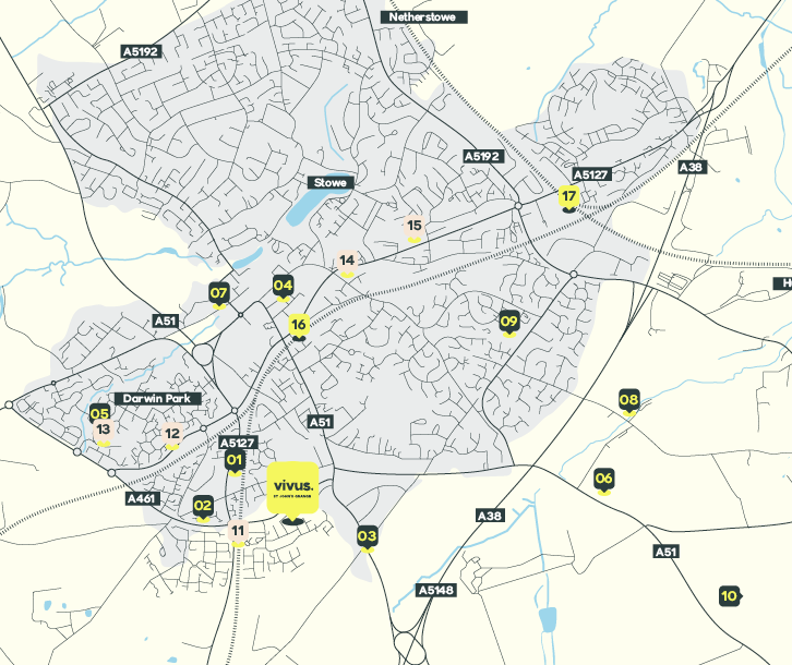 Set within the cathedral city of Lichfield, Staffordshire, and just 18 miles north of Birmingham, St John’s Grange offers excellent local amenities. Residents benefit from convenient shopping, well-regarded schools and a variety of independent shops and eateries just moments from your door. Discover all that Lichfield has to offer.