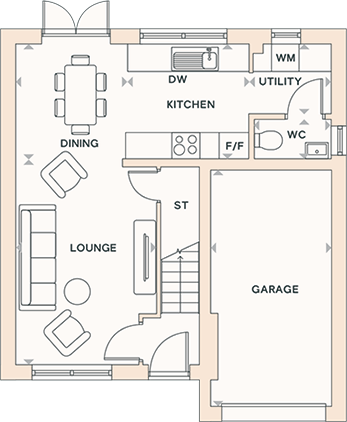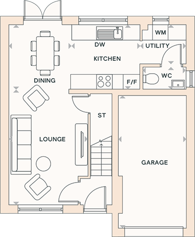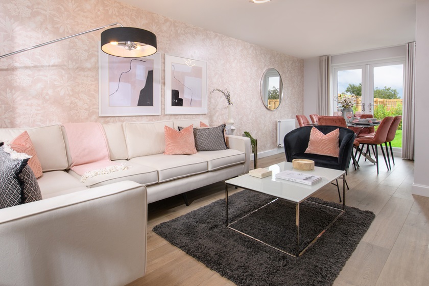 A separate living area provides space to unwind, while the kitchen supports cooking and dining with ease. Three double bedrooms and two bathrooms, alongside a garage, add everyday practicality.