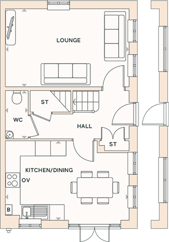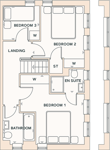 Living areas are arranged to feel open and practical, with bedrooms positioned upstairs for privacy. An en suite alongside the main bathroom keeps daily routines simple.