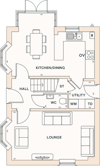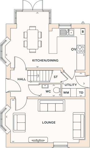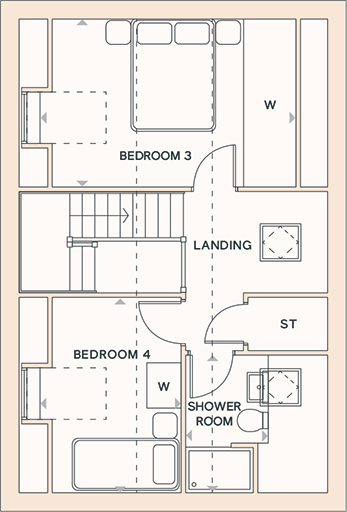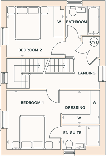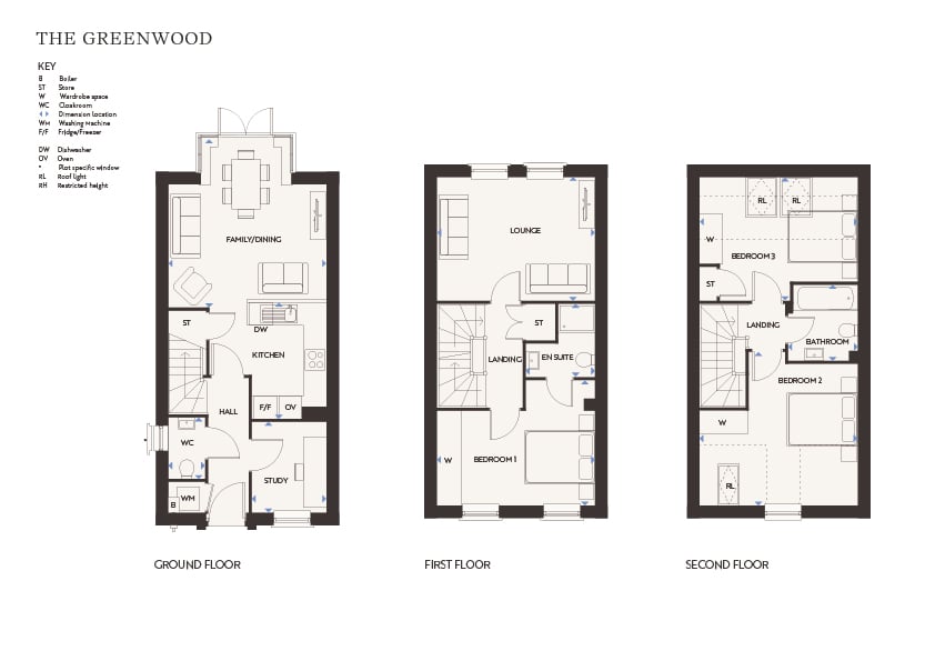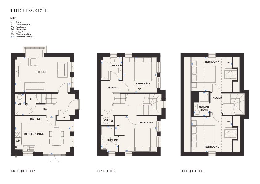 The upper floors create well-defined sleeping spaces, including a main bedroom with its own dressing area and en suite. A separate lounge and generous kitchen and dining area provide space to relax and come together.