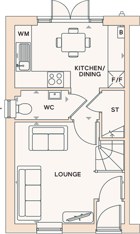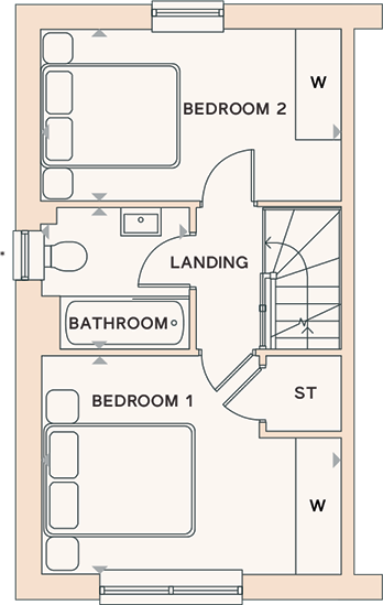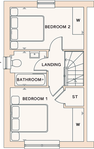 This two-bedroom semi-detached home offers balanced space across both floors.