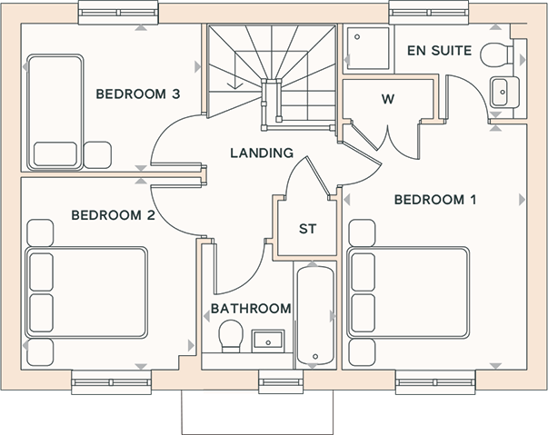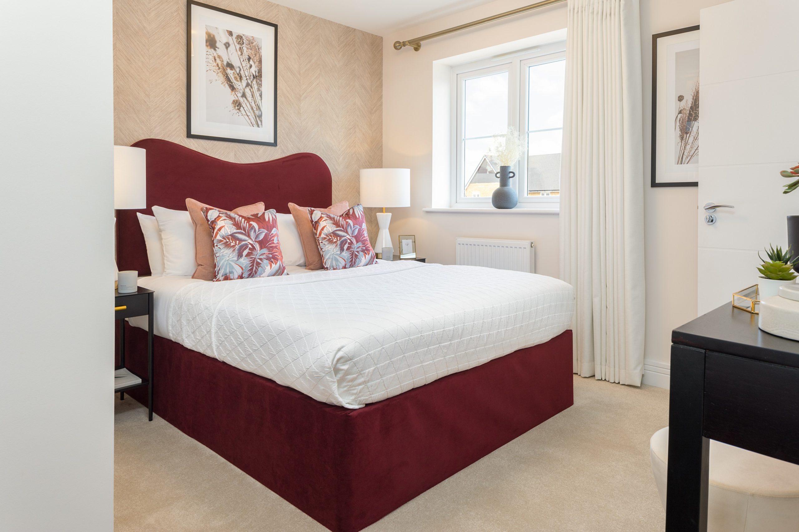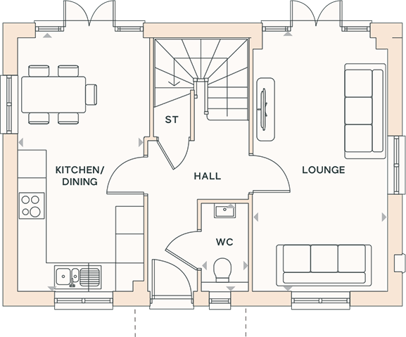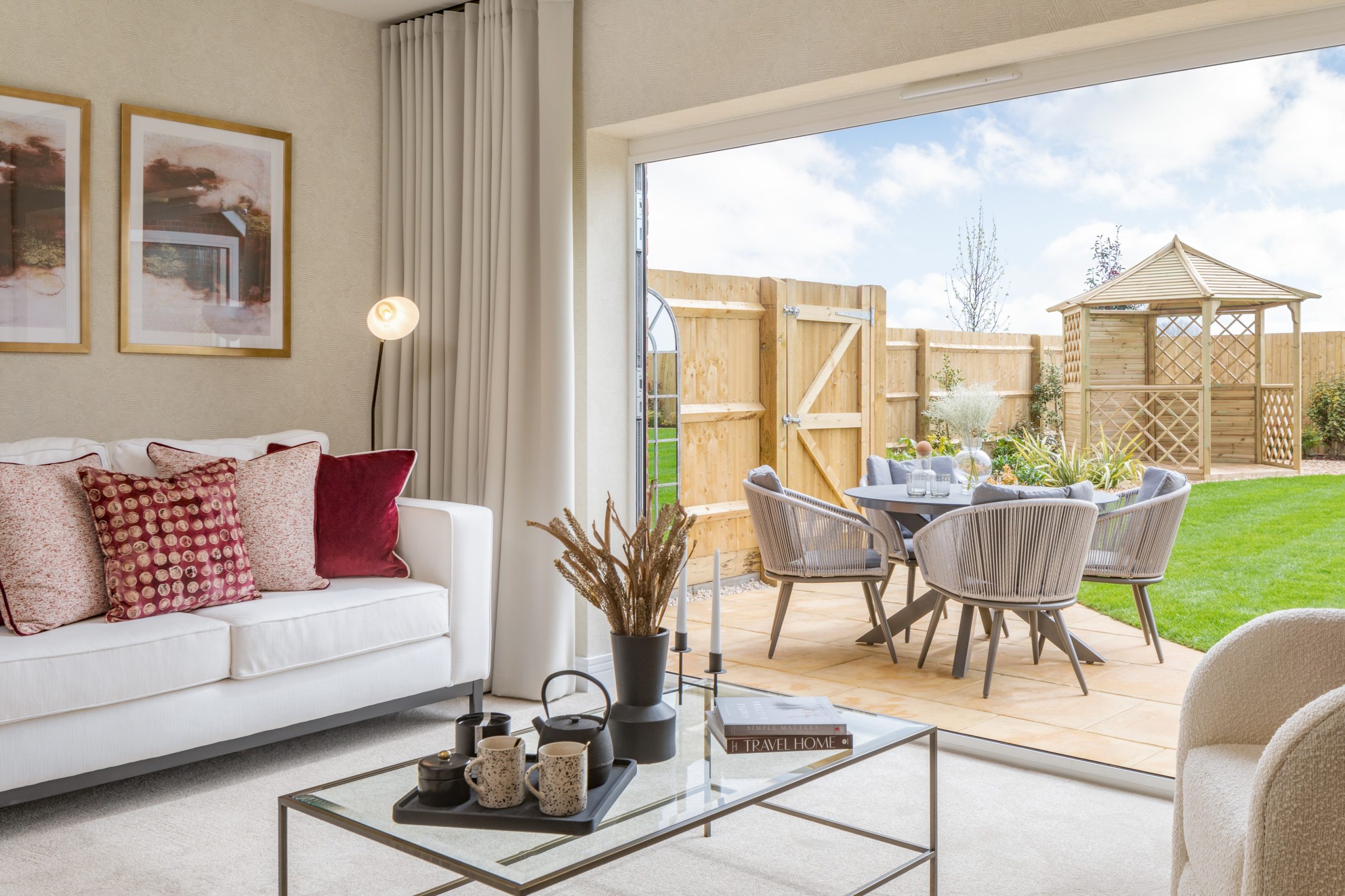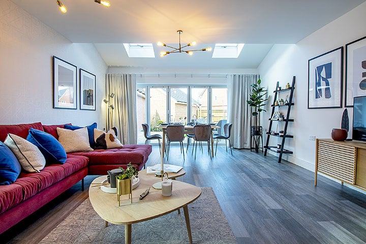 The kitchen and dining area and the lounge both open out through French doors, filling the home with natural light. Upstairs, three well-proportioned bedrooms and two bathrooms create space for busy mornings and quiet evenings.